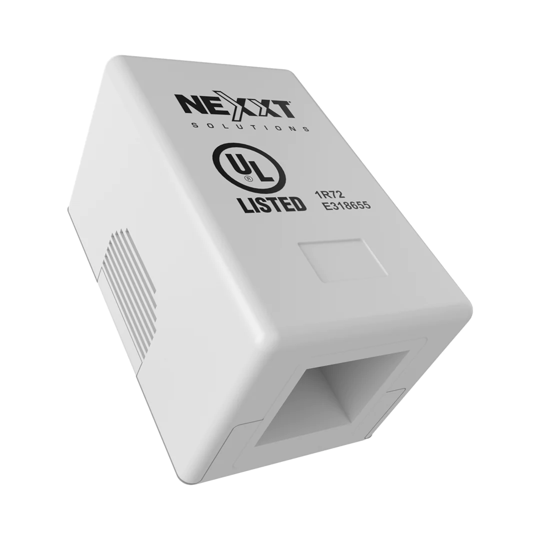 This unloaded mount box is compact and easy to install on a flat surface. Comes with screws and double-sided mounting tape, allowing the installer to choose his preferred mounting method. The durable plastic structure of the boxes guarantees cable strength and provides mechanical protection for the connection area. Designed for use with any standard category 5E or category 6 RJ-45 keystone jack.